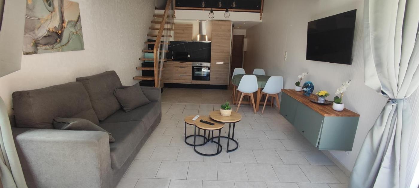 Appartement 1 Chambre. This air-conditioned apartment comprises 1 living room, 1 separate bedroom and 1 bathroom with a shower. The fully equipped kitchen features a stovetop, a refrigerator, kitchenware and a microwave. Featuring a terrace with garden views, this apartment also provides a washing machine and a flat-screen TV. The unit offers 2 beds.