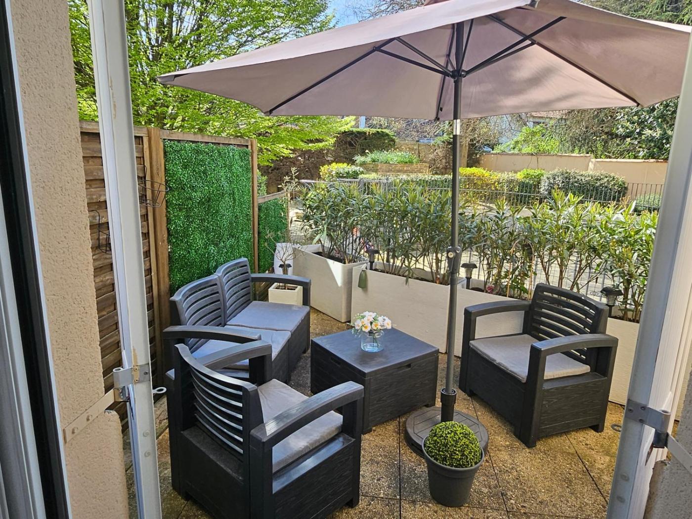 Appartement 1 Chambre. Featuring a private entrance, this apartment consists of 1 living room, 1 separate bedroom and 1 bathroom with a bath. The fully equipped kitchen features a stovetop, a refrigerator, kitchenware and an oven. Boasting a terrace with garden views, this apartment also provides a coffee machine and a flat-screen TV with cable channels. The unit offers 2 beds.