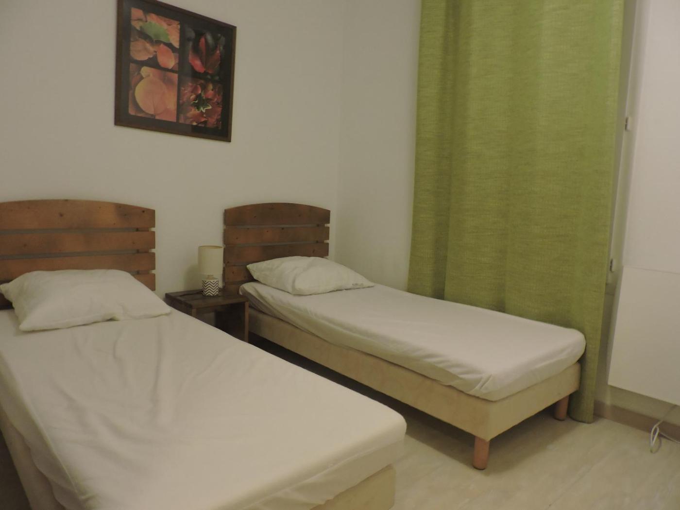 Cet appartement comprend 2 chambres, une télévision, une kitchenette équipée avec un réfrigérateur et un lave-vaisselle, ainsi que 1 salle de bains avec une douche.