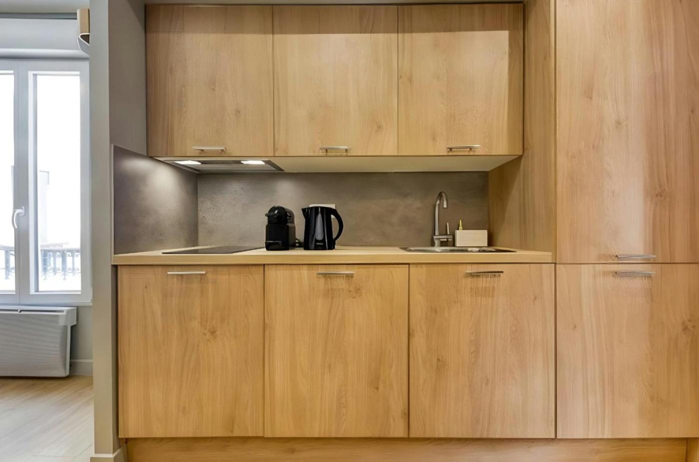Cet appartement comporte un salon ainsi qu’une cuisine entièrement équipée avec un réfrigérateur. Une télévision est disponible.