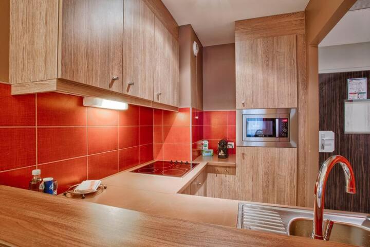 Appartement 1 Chambre. The well-equipped kitchen features a stovetop, a refrigerator, kitchenware and a microwave. The apartment provides a private entrance, a coffee machine, a dining area, a sofa and a flat-screen TV. The unit offers 1 bed.
