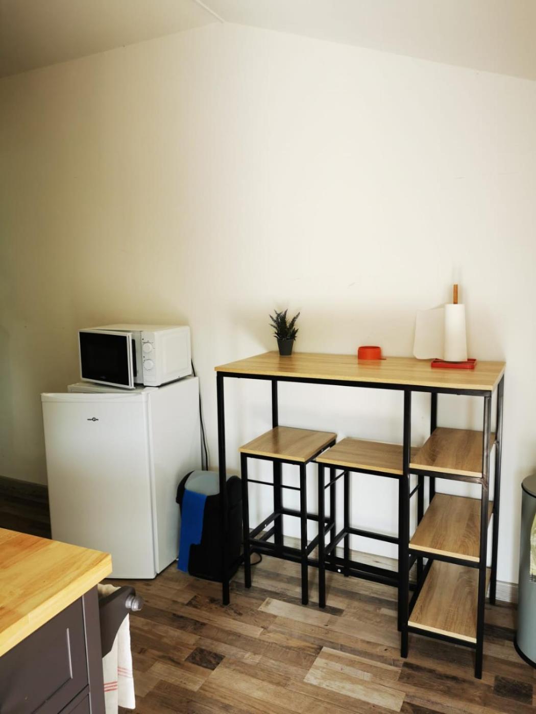 La kitchenette est pourvue d’un réfrigérateur, d’un four et d’un micro-ondes. Elle est également dotée d’une bouilloire.