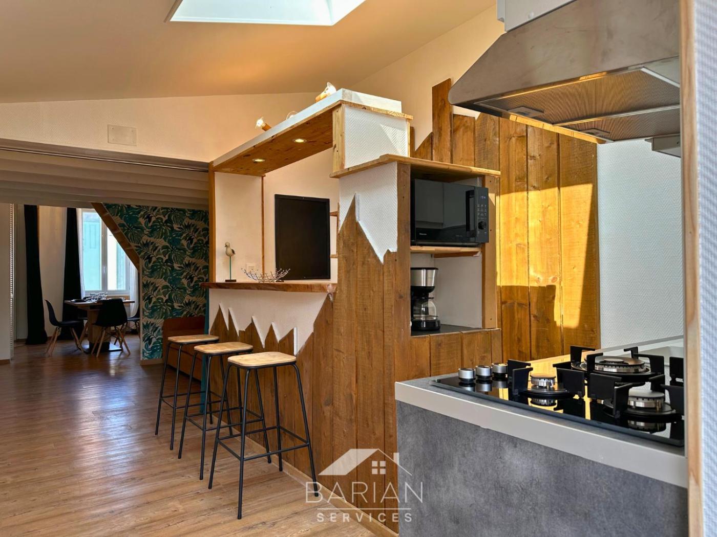 Maison 1 Chambre. Featuring a private entrance, this holiday home is comprised of 1 living room, 1 separate bedroom and 1 bathroom with a shower and a hairdryer. Guests will find a stovetop, a refrigerator, a dishwasher and kitchenware in the well-fitted kitchen. The holiday home also has a barbecue. Boasting a terrace with garden views, this holiday home also offers a washing machine and a flat-screen TV. The unit offers 2 beds.