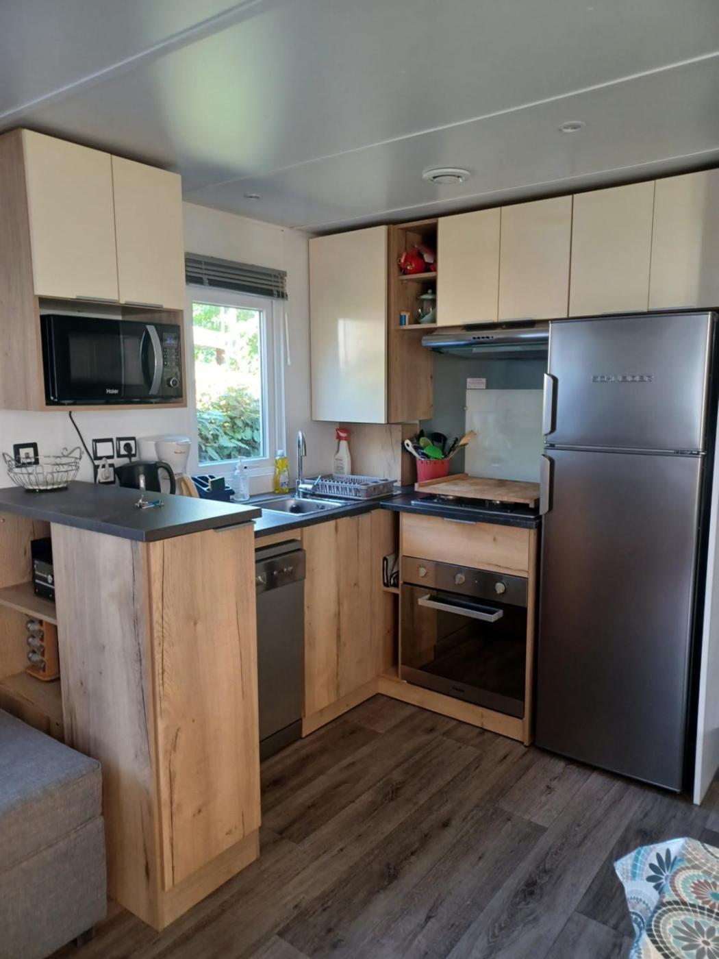 Mobile Home. Guests will find a stovetop, a refrigerator, a dishwasher and kitchenware in the kitchen. The mobile home also provides guests with a barbecue. This mobile home is air-conditioned and features a seating area with a flat-screen TV, a washing machine, a coffee machine, a dining area, as well as a wardrobe. The unit offers 5 beds.