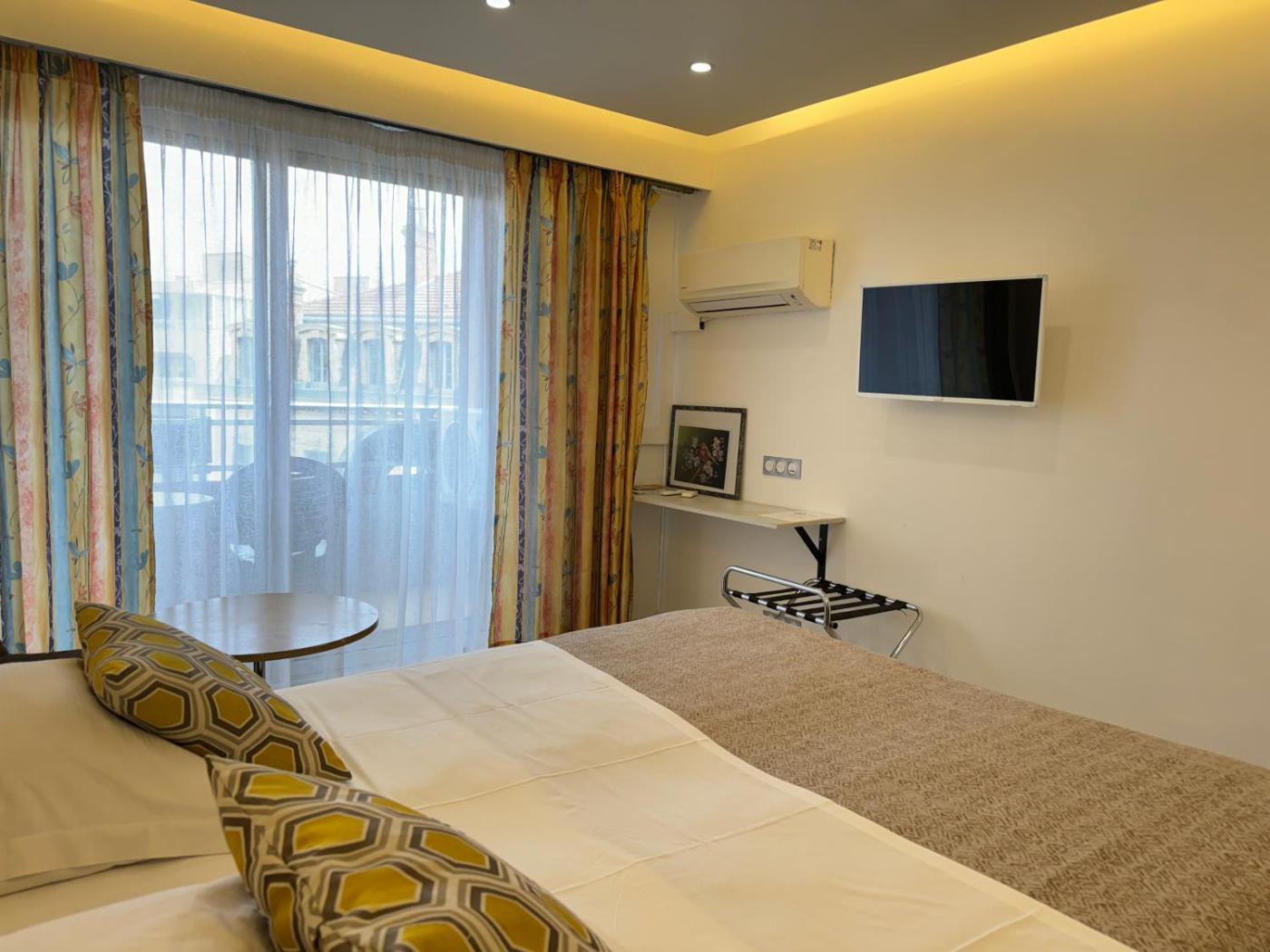 Notre établissement récemment rénové allie parfaitement confort moderne et charme provençal. Profitez du calme et de la tranquillité de nos chambres climatisées, dont la plupart disposent dun balcon privé doù admirer la vue spectaculaire sur les collines de Grasse et la baie de Cannes. Notre équipe chaleureuse et dévouée fera tout pour rendre votre séjour inoubliable.