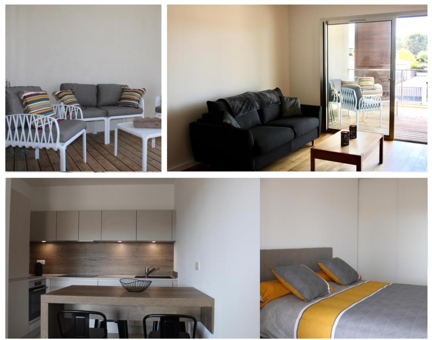 Appartement 1 Chambre. This air-conditioned apartment is comprised of 1 living room, 1 separate bedroom and 1 bathroom with a walk-in shower. The well-fitted kitchen features a stovetop, a refrigerator, a dishwasher and kitchenware. Featuring a terrace with mountain views, this apartment also offers a washing machine and a flat-screen TV. The unit offers 2 beds.
