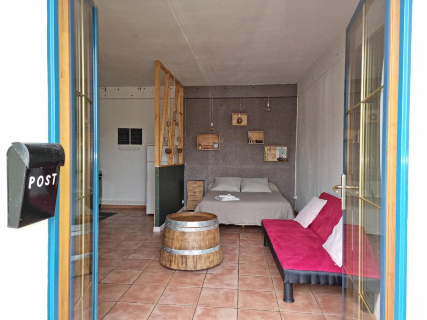 Appartement 1 Chambre. Featuring a private entrance, this apartment comprises 1 living room, 1 separate bedroom and 1 bathroom with a shower and a hairdryer. The well-fitted kitchen features a stovetop, a refrigerator, kitchenware and a microwave. Boasting a terrace with garden views, this apartment also provides a tea and coffee maker and a flat-screen TV with satellite channels. The unit offers 2 beds. ;