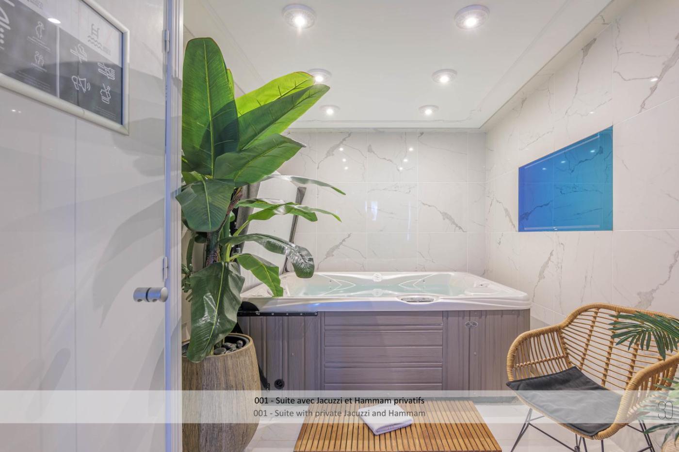 Suite avec Jacuzzi Hammam. Cette suite possède un bain à remous et une baignoire spa. Cette suite climatisée comprend une entrée privée, un salon, une chambre séparée ainsi qu’une salle de bains avec une douche et un sèche-cheveux. Cette suite avec vue sur la ville dispose de murs insonorisés, d’un minibar, d’un plateaubouilloire et d’une télévision à écran plat avec des services de streaming. Ce logement comprend 1 lit.