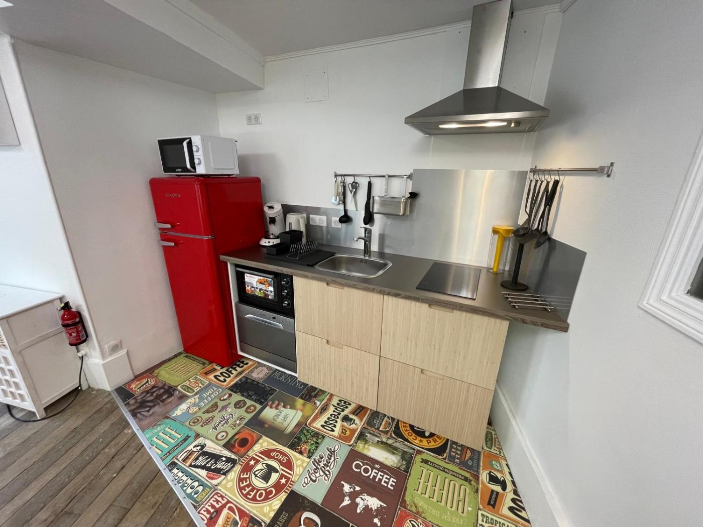 Appartement 1 Chambre. The well-fitted kitchen has a stovetop, a refrigerator, a dishwasher and kitchenware. The apartment features parquet floors, a seating area with a flat-screen TV, a tea and coffee maker, a dining area as well as city views. The unit has 2 beds.