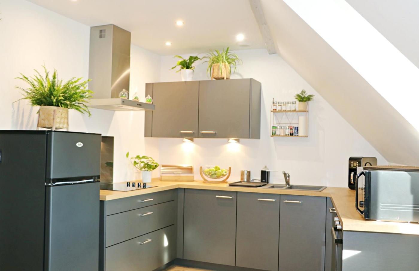Appartement 1 Chambre. Boasting a private entrance, this air-conditioned apartment features 1 living room, 1 separate bedroom and 1 bathroom with a bath and a shower. Meals can be prepared in the well-fitted kitchen, which has a stovetop, a refrigerator, kitchenware and an oven. This apartment has a washing machine, flat-screen TV with cable channels, city views, as well as fruit for guests. The unit has 2 beds.