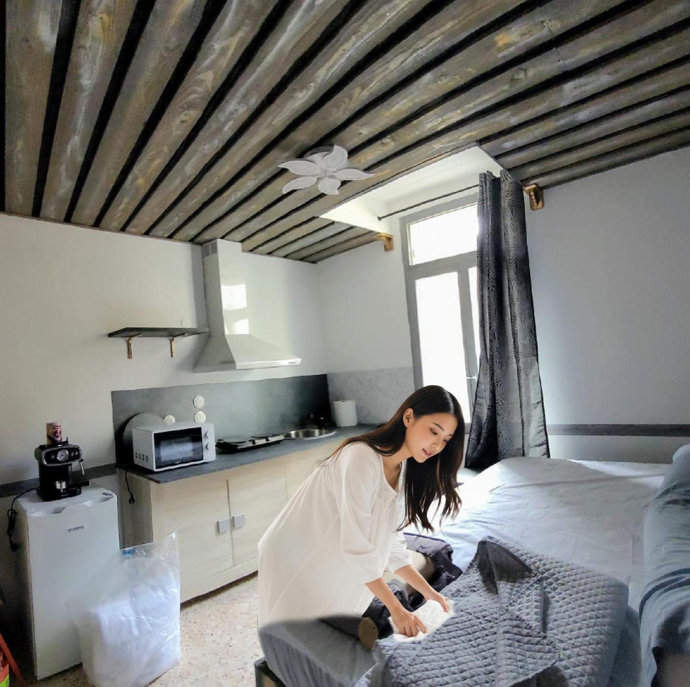 Appartement 1 Chambre. Boasting a private entrance, this air-conditioned apartment features 1 bedroom and 1 bathroom with a shower. The fully equipped kitchen has a stovetop, a refrigerator, kitchenware and a microwave. This apartment features a coffee machine, a dining area, a flat-screen TV and a patio. The unit has 1 bed.