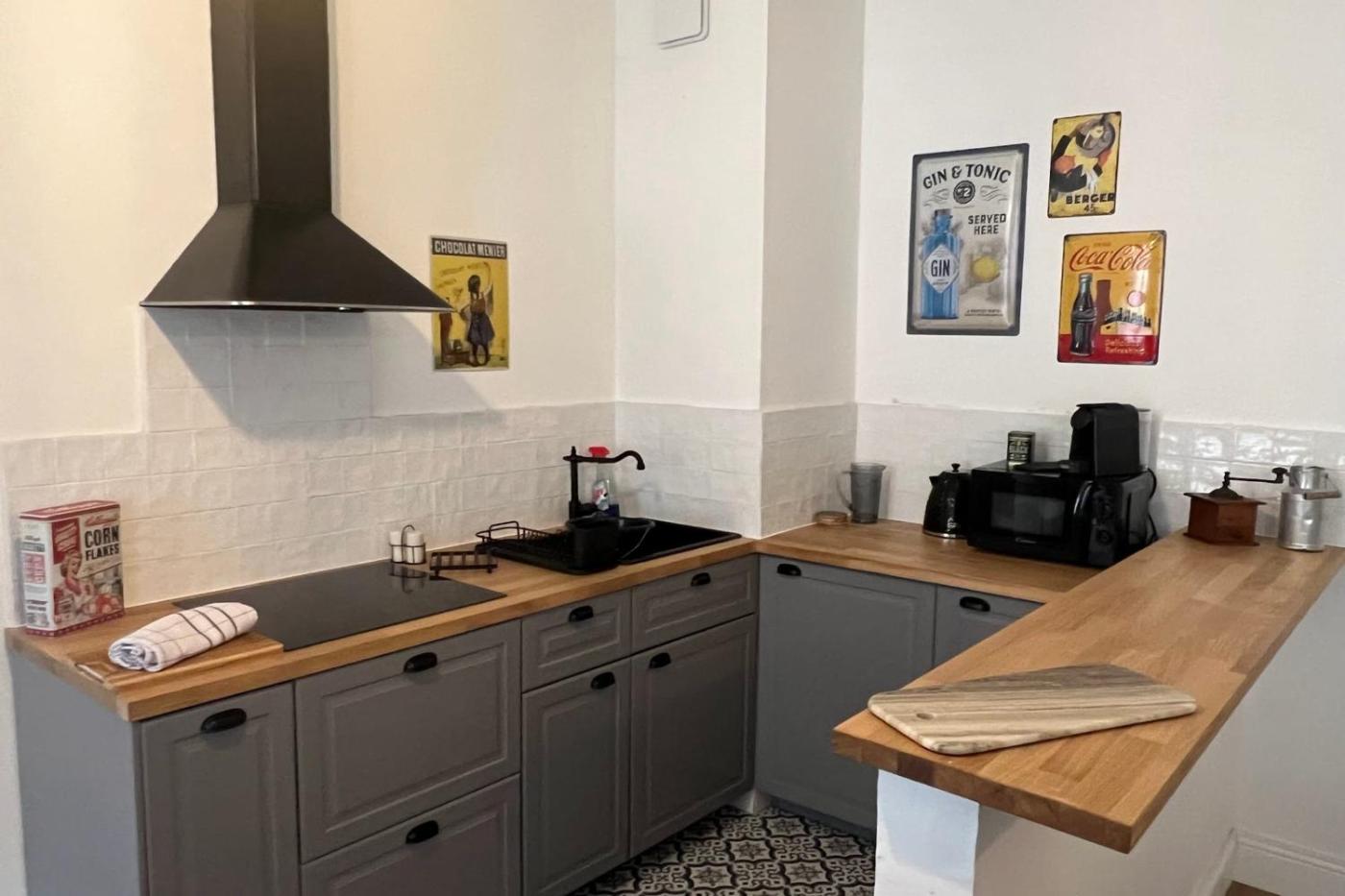 Appartement. This spacious apartment features 1 living room, 1 separate bedroom and 1 bathroom with a bath and free toiletries. Guests can make meals in the kitchen that features a refrigerator, kitchenware, a microwave and a toaster. The apartment features a private entrance, a coffee machine, a seating area, a TV with streaming services, as well as city views. The unit has 1 bed.