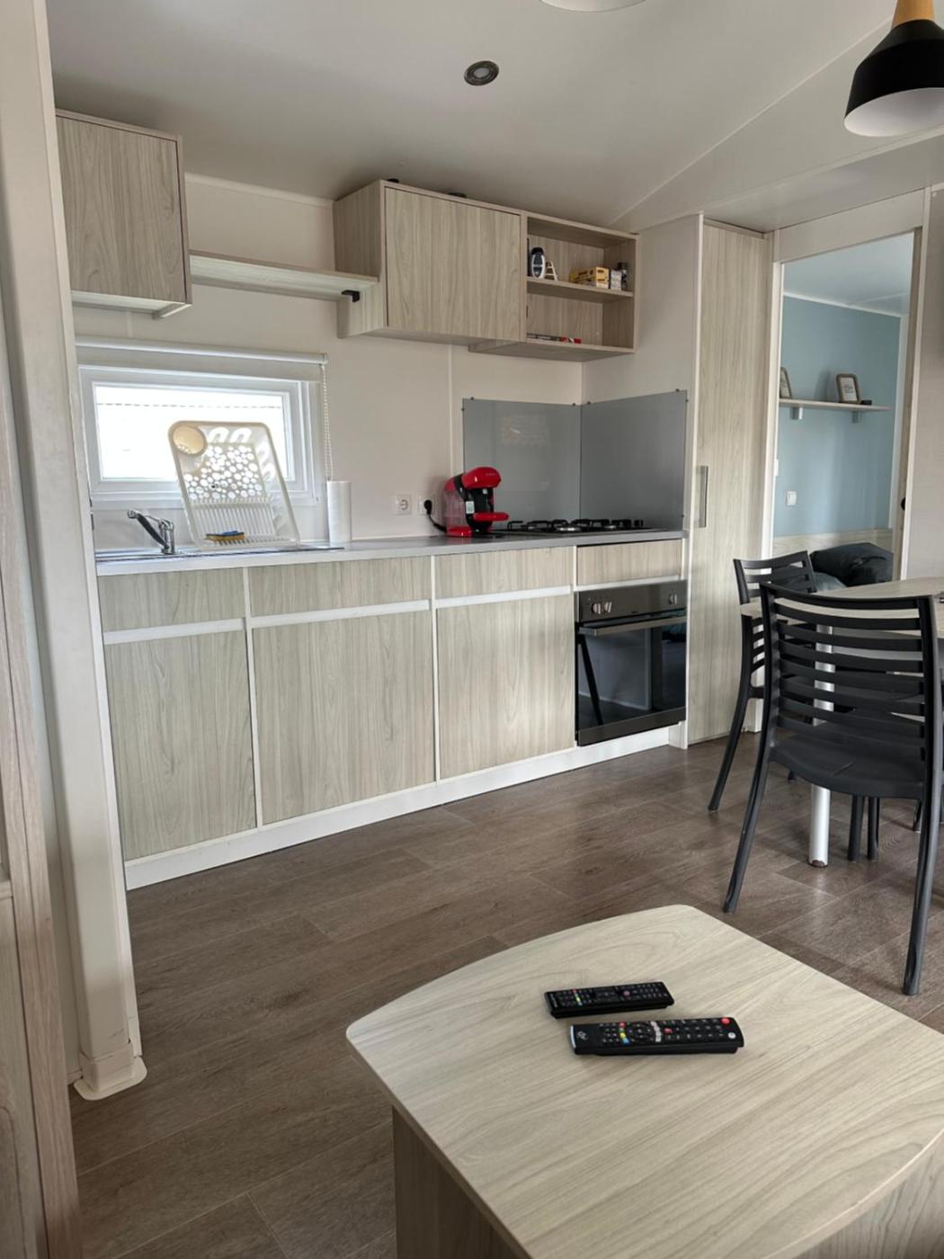 Mobile Home. This mobile home is air-conditioned and has a seating area with a flat-screen TV, a dining area, a wardrobe, an electric kettle, as well as heating. The unit has 6 beds.