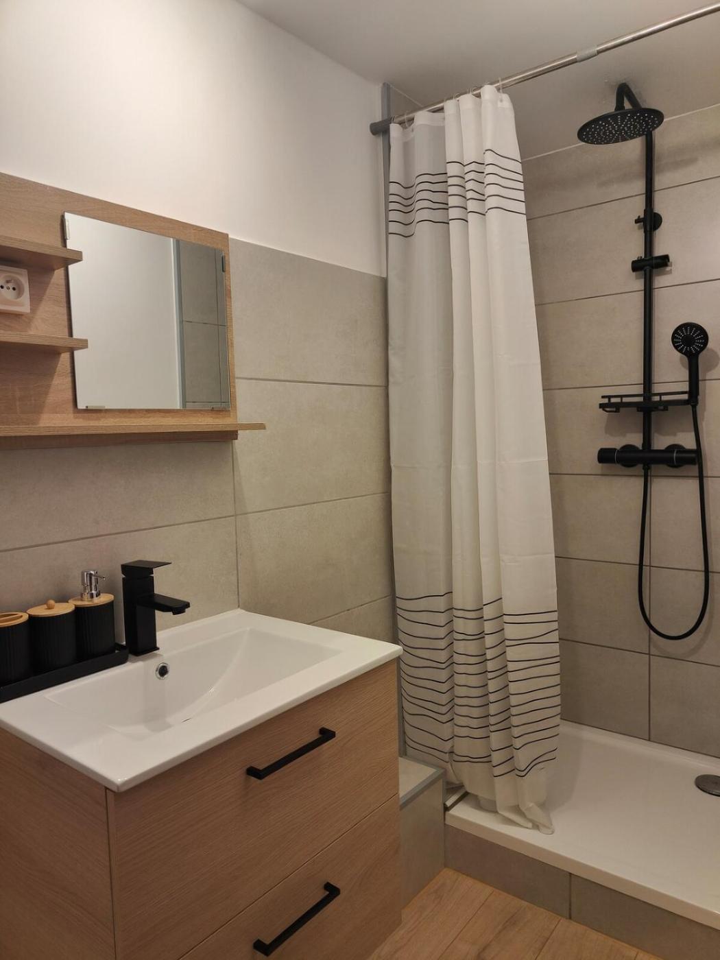 Appartement 1 Chambre. The well-fitted kitchen features a stovetop, a refrigerator, kitchenware and a microwave. The air-conditioned apartment offers a flat-screen TV, a washing machine, a private entrance, a tea and coffee maker as well as city views. The unit offers 2 beds.