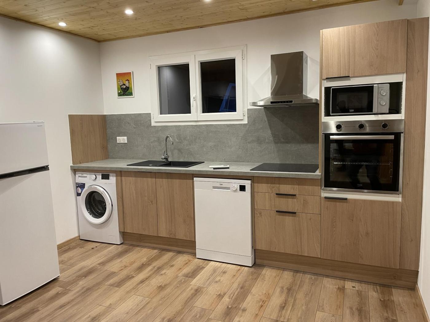 Gîte 2 Chambres. Featuring a private entrance, this air-conditioned bungalow comprises 1 living room, 2 separate bedrooms and 1 bathroom with a walk-in shower and a hairdryer. Meals can be prepared in the kitchen, which comes with a refrigerator, a dishwasher, kitchenware and an oven. The spacious bungalow provides a washing machine, a tea and coffee maker, a seating area, a flat-screen TV, as well as mountain views. The unit offers 5 beds.