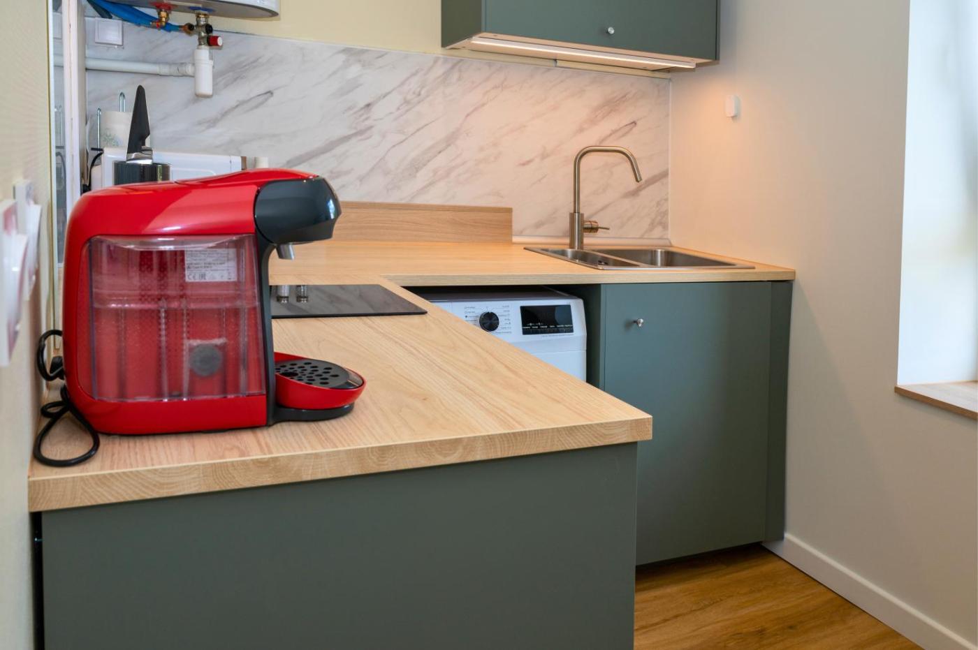 Appartement 1 Chambre. This apartment features 1 living room, 1 separate bedroom and 1 bathroom with a shower and free toiletries. The well-equipped kitchen features a stovetop, a refrigerator, kitchenware and an oven. This apartment is air-conditioned and has a seating area with a flat-screen TV, a washing machine, a tea and coffee maker, a dining area, as well as a wardrobe. The unit has 2 beds.