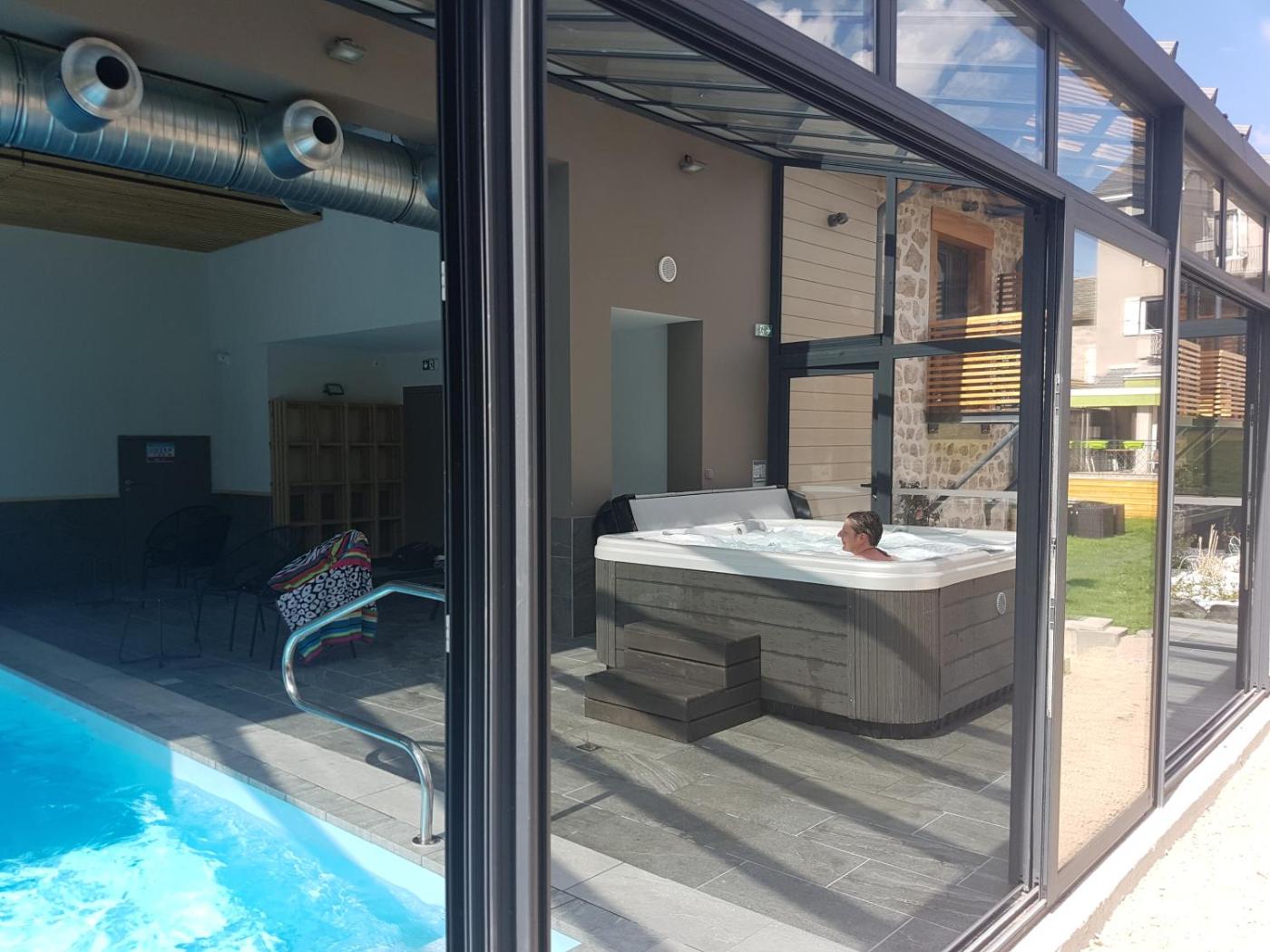 Chambre Quadruple Confort. Guests will have a special experience as this quadruple room offers a pool with a view, a hot tub and a sauna. Offering free toiletries, this quadruple room includes a private bathroom with a walk-in shower, a bath and a hairdryer. This quadruple room features a private entrance, flat-screen TV with cable channels, garden views, as well as winechampagne for guests. The unit offers 2 beds. ;