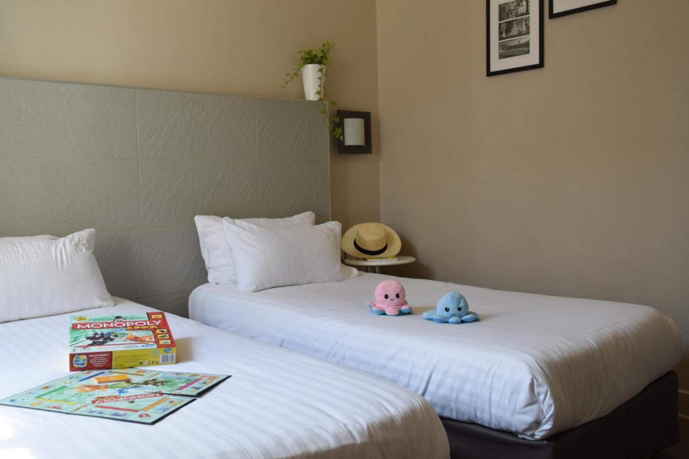 Chambre Lits Jumeaux - Vue sur Rue. Agrémentée d’un balcon surplombant la ville, cette chambre lits jumeaux climatisée dispose d’une télévision par câble à écran plat et d’une salle de bains privative. Ce logement comprend 2 lits. ;