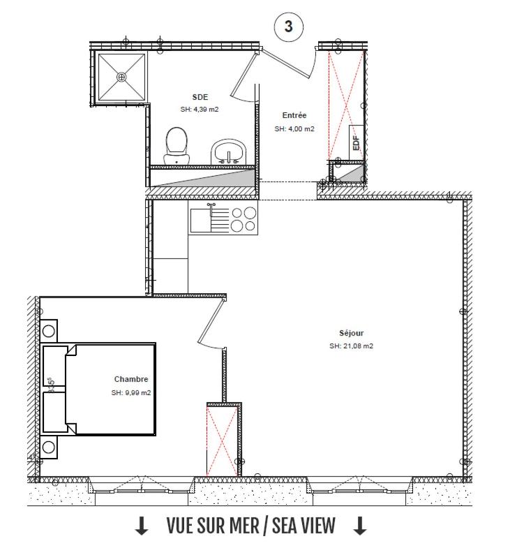 Appartement 1 Chambre. Cet appartement se compose d’un salon, d’une chambre séparée ainsi que d’une salle de bains pourvue d’une douche et d’un sèche-cheveux. La cuisine bien équipée est munie de plaques de cuisson, d’un réfrigérateur, d’un lave-vaisselle et d’ustensiles. Offrant une vue sur la mer, cet hébergement dispose d’une armoire, d’un coin salon, d’un plateaubouilloire et d’une télévision par câble à écran plat. Ce logement comprend 2 lits. ;